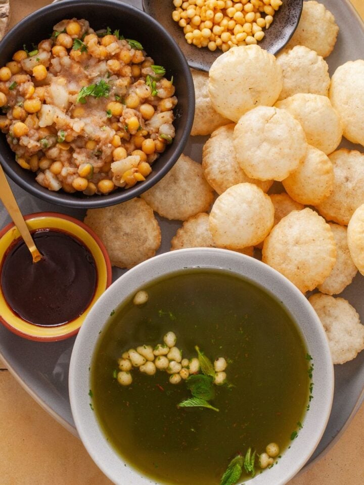 Street vendors don't add a ton of toppings (though you can go all out). However really, yogurt and chutneys is all you need. Make sure that the chutneys especially the green chutney is nice and spicy!
