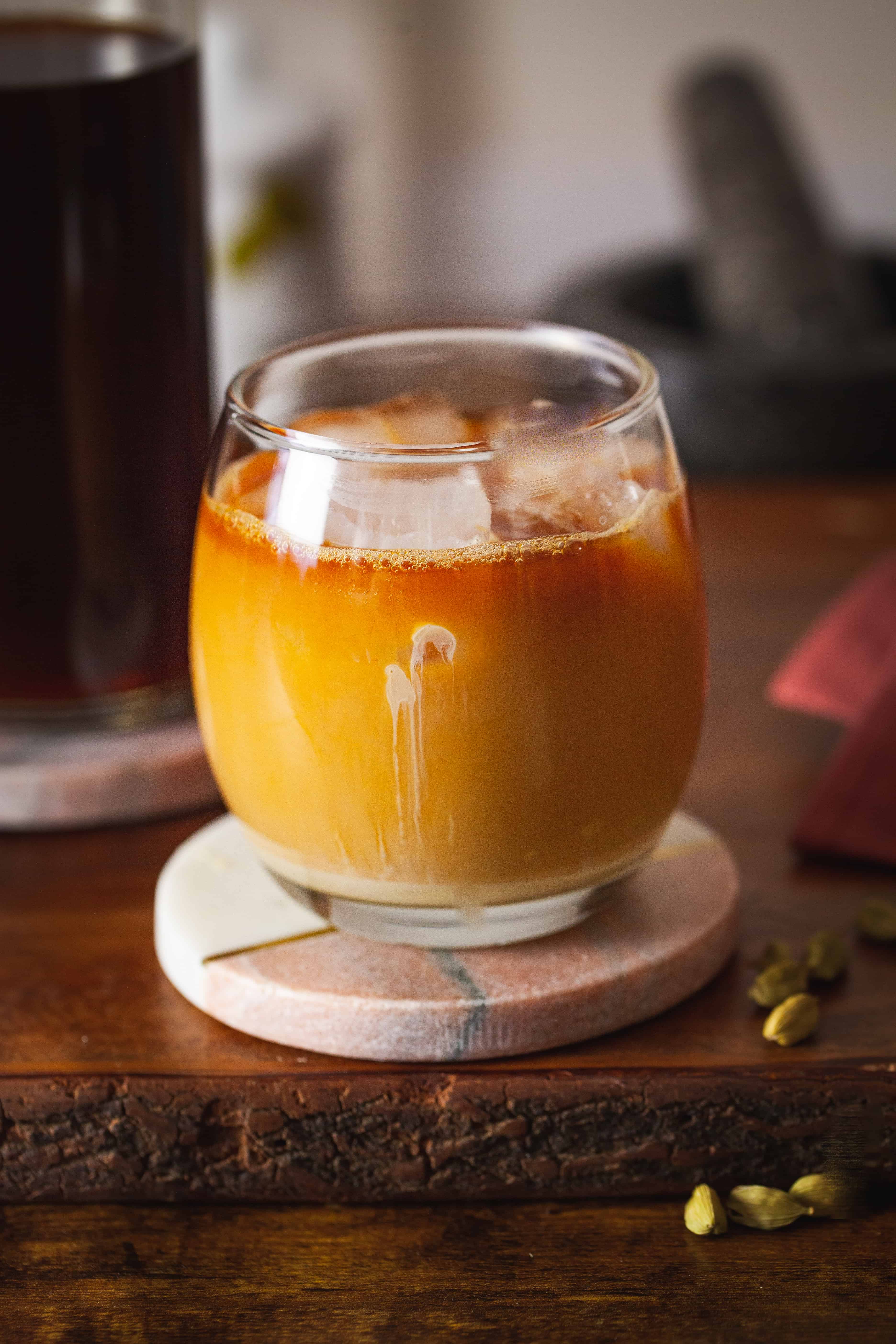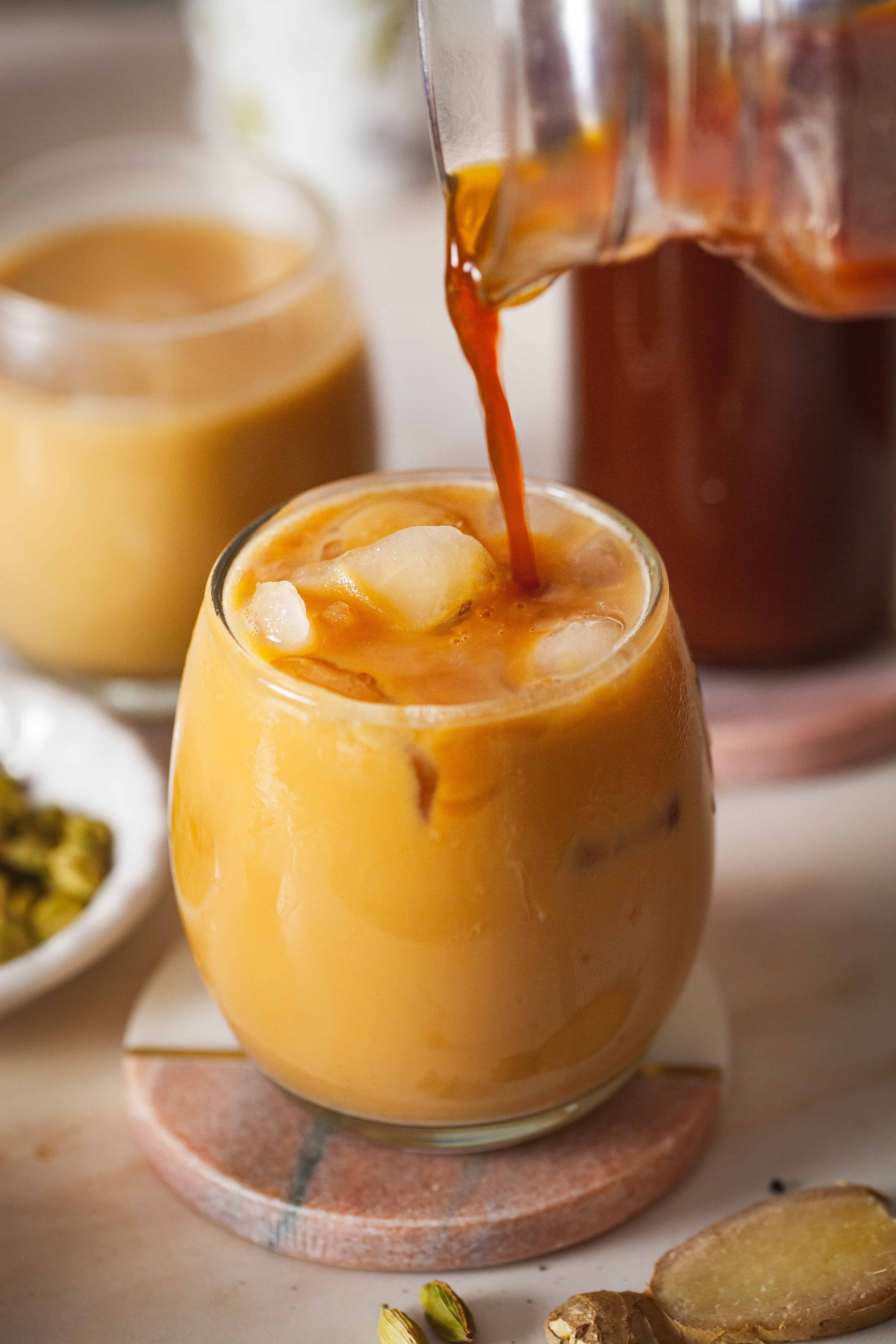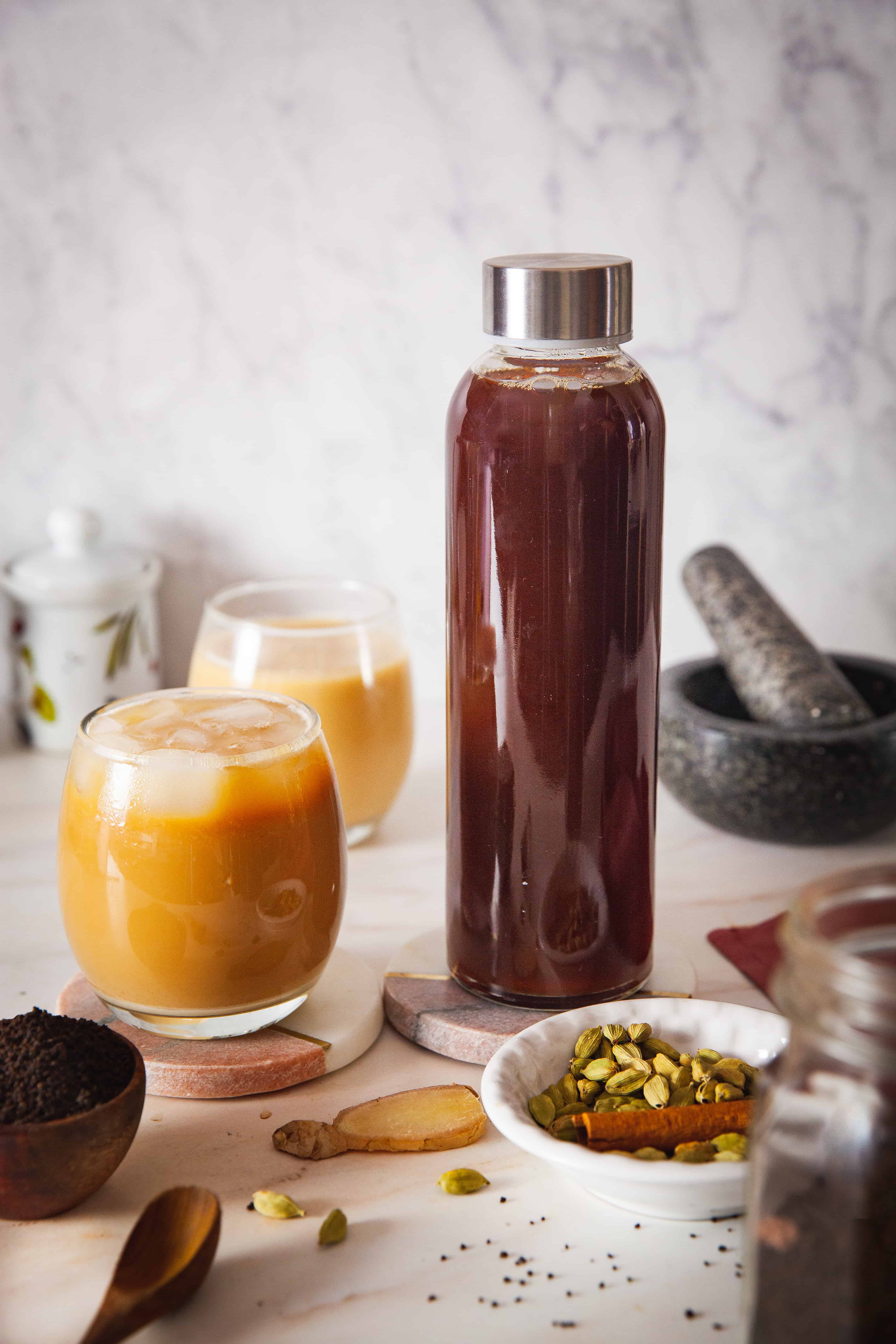 - To make Masala Chai - Add ⅓ cold (alomg with ice cubes) or hot milk to about ½ cup of the concentrate along with 1-2 teaspoon condensed milk or sugar. Really make it your own, taste and adjust. Mix and enjoy.