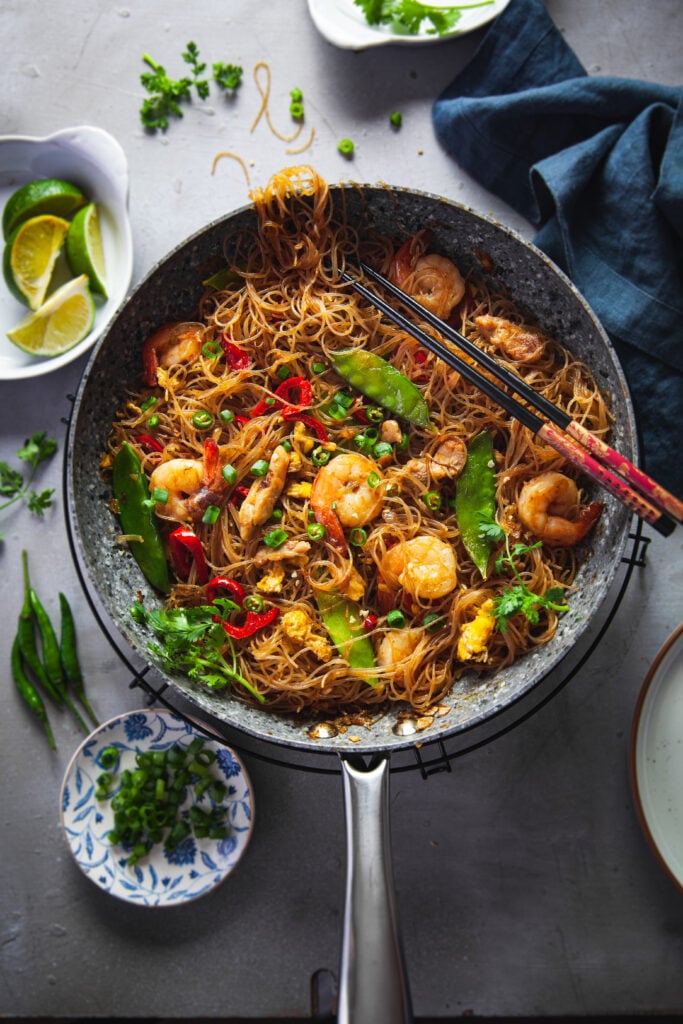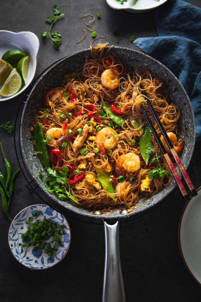 - Keep all the ingredients ready before you start stir frying the noodles. This includes preparing the sauce, chopping the vegetables and soaking the rice noodles. This is super important and makes your work flow so easy!