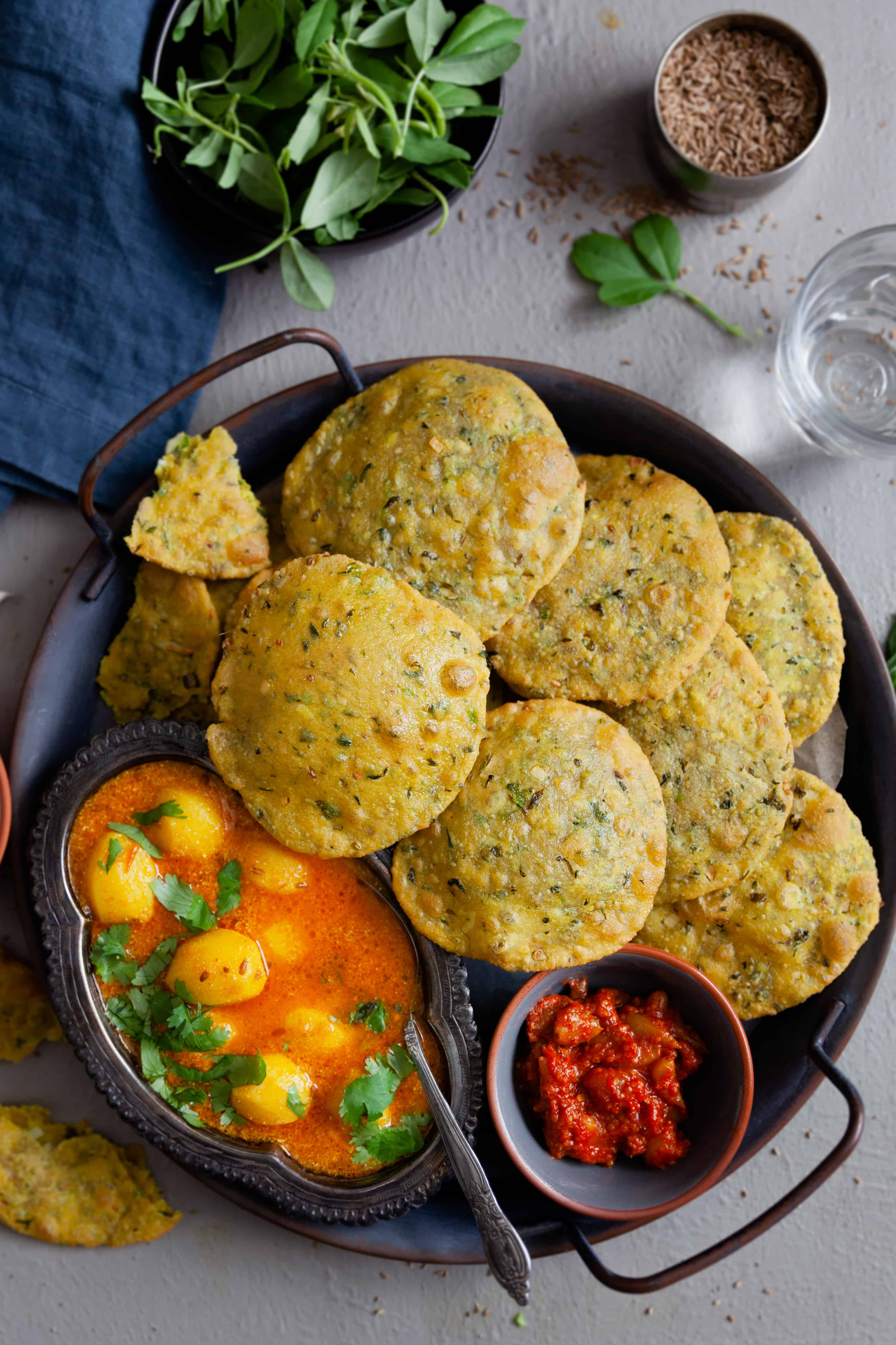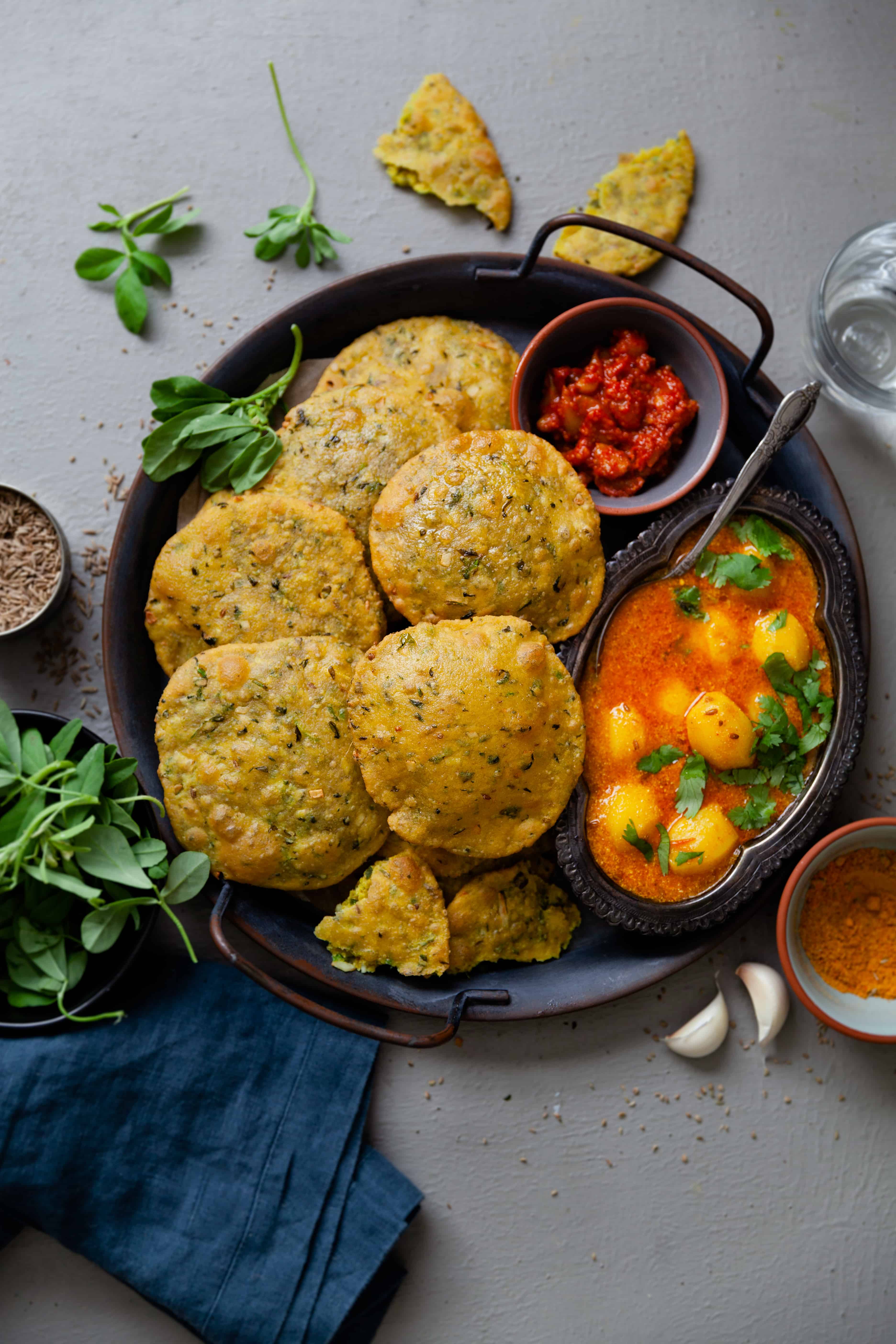I love making these puri during festivals like Dusherra or Diwali that fall during the cold months when fresh methi is easily available.