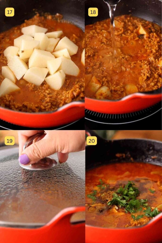 - Mix in the potatoes if using (image 17), add hot water(image 18) and cover the pot (image 19). Let cook for 8-10 minutes or until the potatoes are cooked through (fork tender).