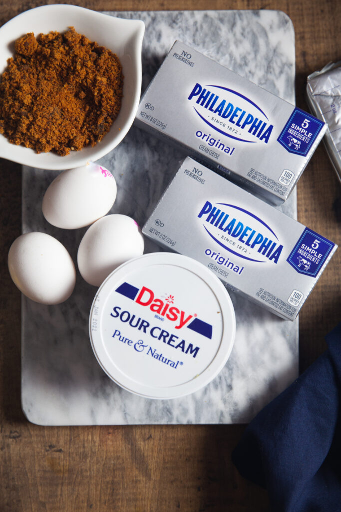 - Jaggery Cream Cheese filling :- The filling uses usual cheesecake ingredients- full fat cream cheese,jaggery, sour cream, heavy cream and eggs are few of the things for the filling.