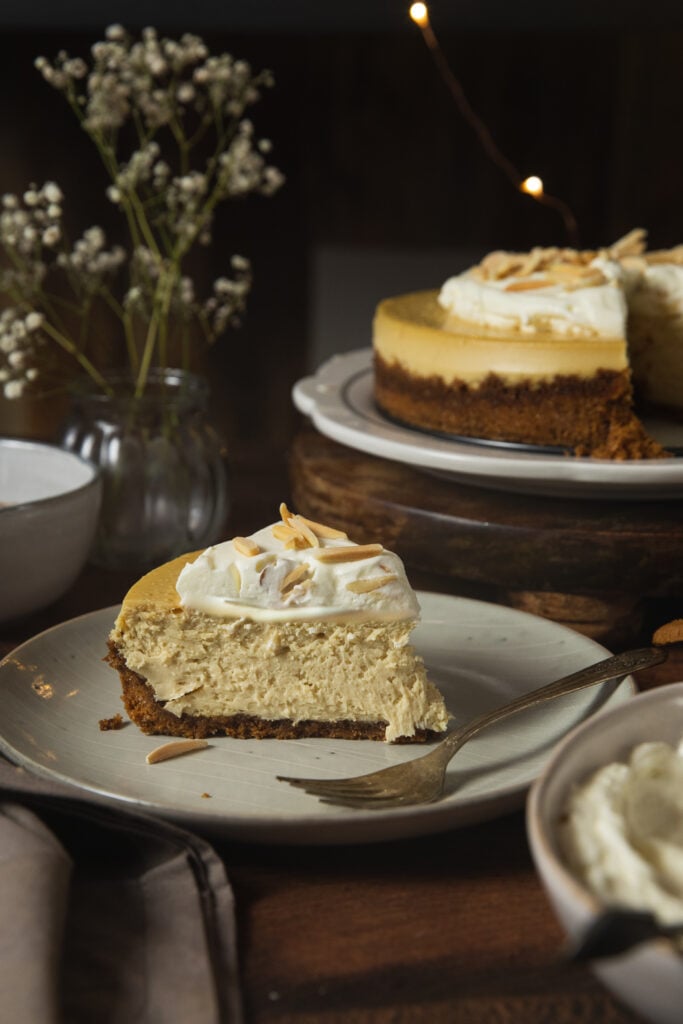 Jaggery cheesecake is a rich and decadent cheesecake with a biscoff cookie crust and a jaggery sweetened cream filling. This cake has a smooth texture and slight smoky hint of jaggery in every bite. Its not too dense but is creamy and rich.