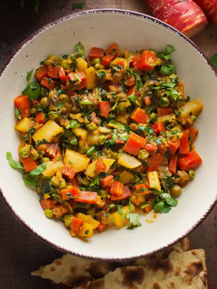 These traditional indian vegetarian curries are flavorful, and so satisfying that you won't miss the meat, I guarantee it! Creamy methi matar malai with its gentle bitterness, tangy yogurt kadhi with okra, comforting palak paneer, and the humble yet hearty matar paneer are dishes I make on repeat and I know you will too.