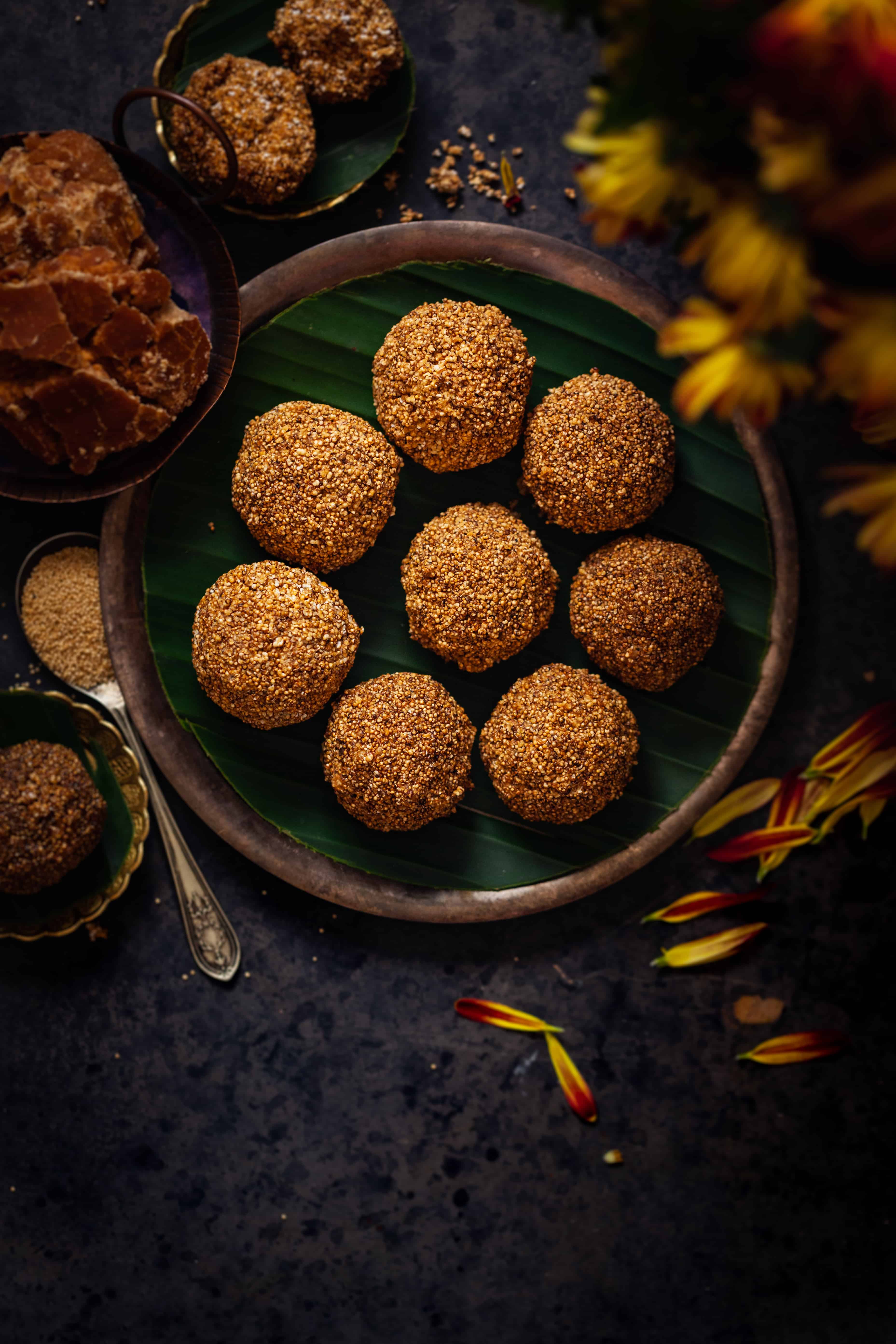 - Wet your hands and quickly bind to make lemon size ladoos while the mixture is still hot. Let cool down on a plate. Serve or store in an air tight container for up to 3 weeks.