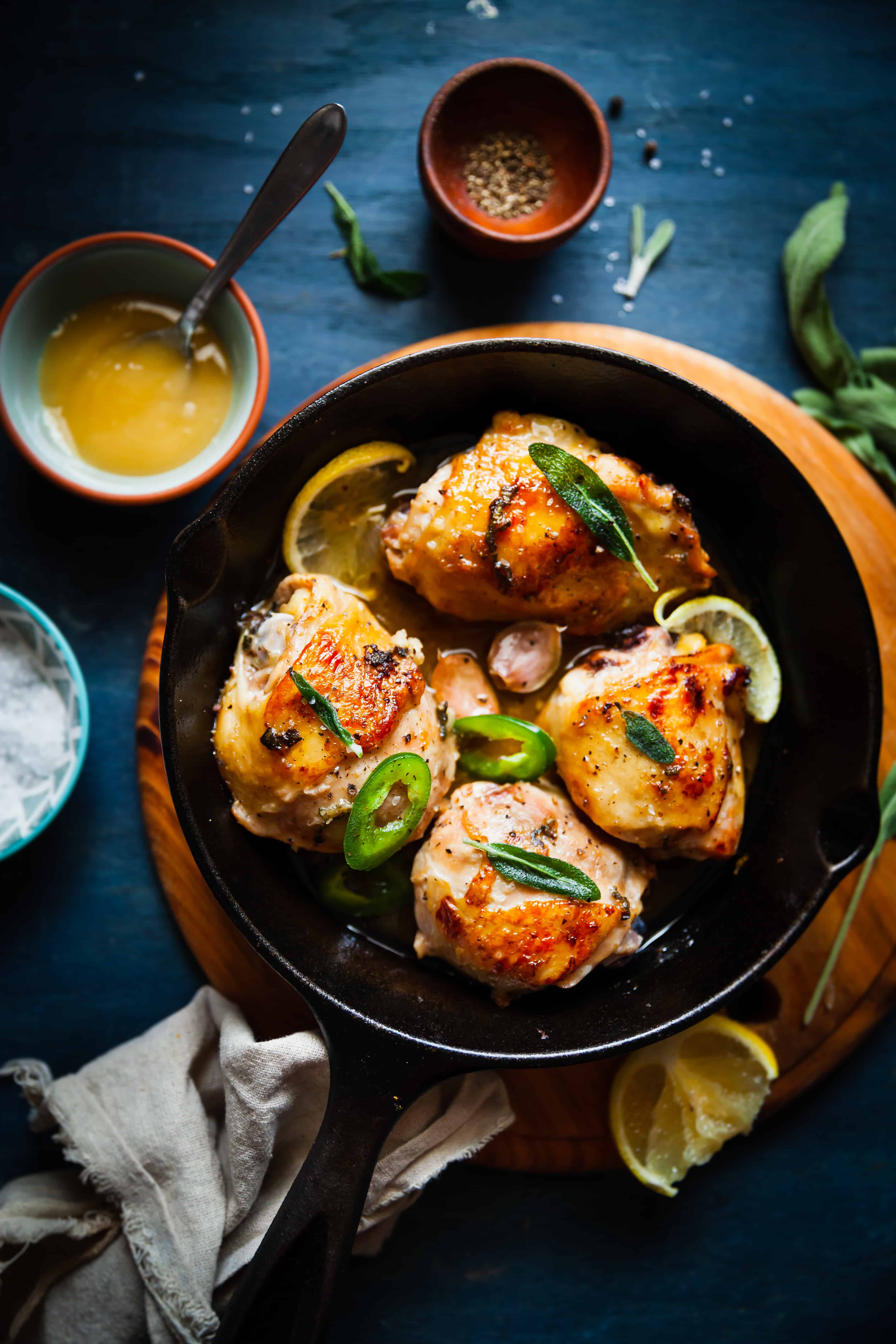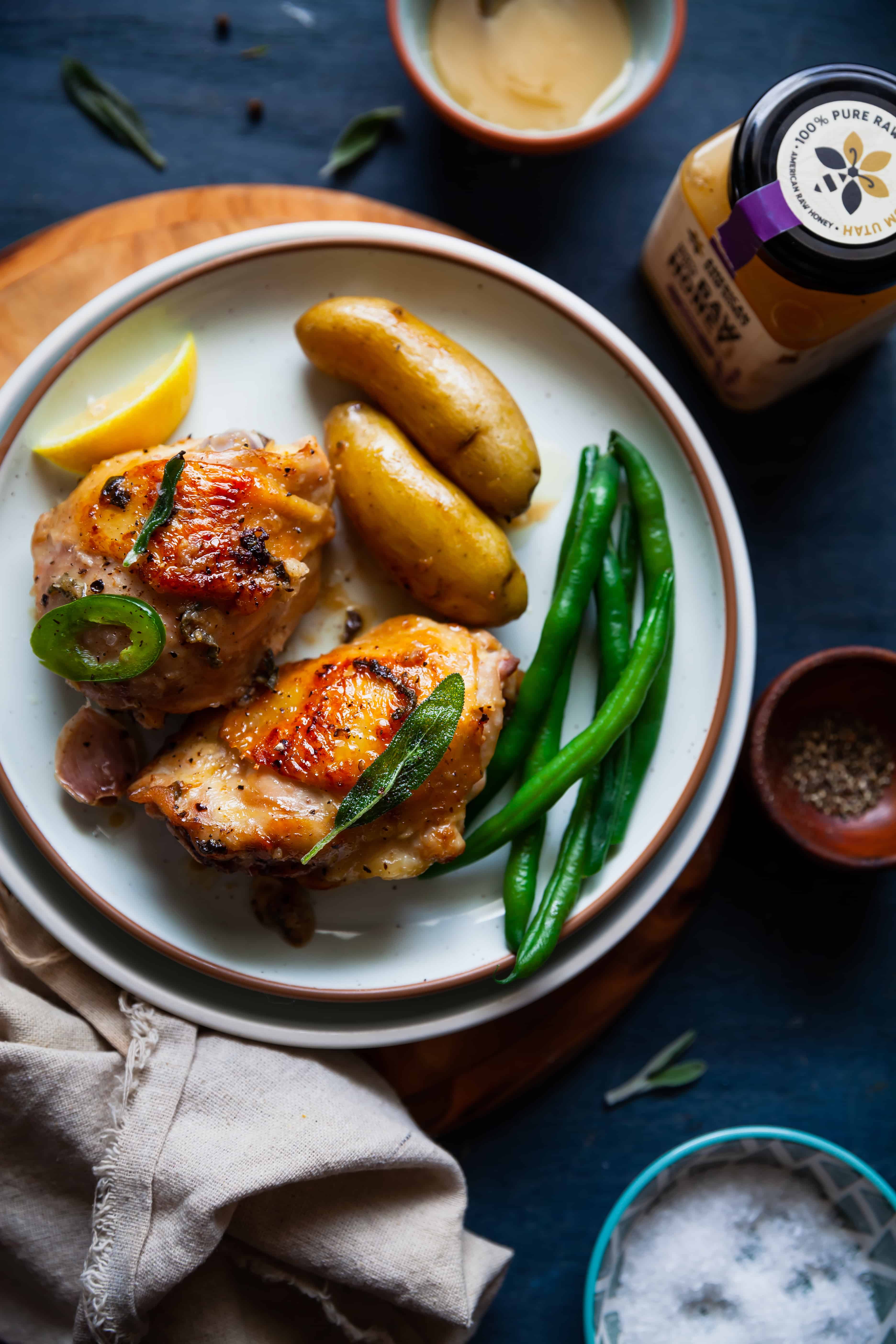 Saucy Skillet Sage Honey & Lemon Chicken. This post is sponsored by American Raw Honey. American raw honey is a small business based in Utah and they farm local raw honey. Their honey is sustainably and organically produced and is of superior quality. Do check them out.